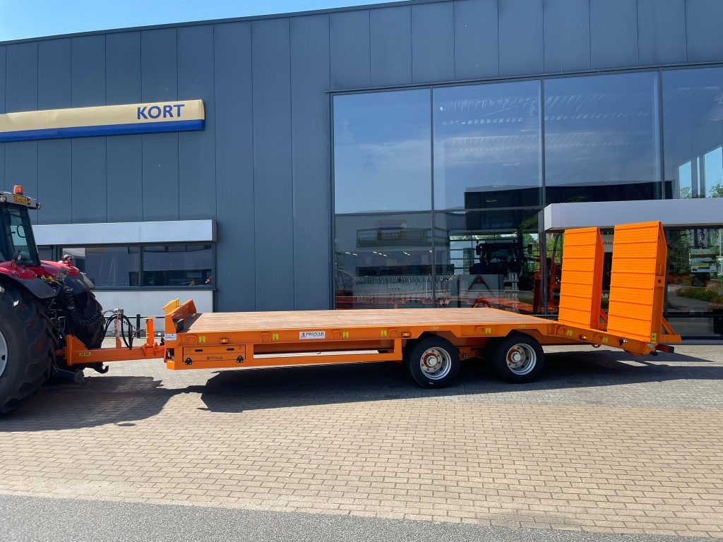 Deze dieplader is een ideale oprijwagen, inclusief oprijplanken voor achter de tractor en heeft een laadvermogen vanĀ 14.900 kg.